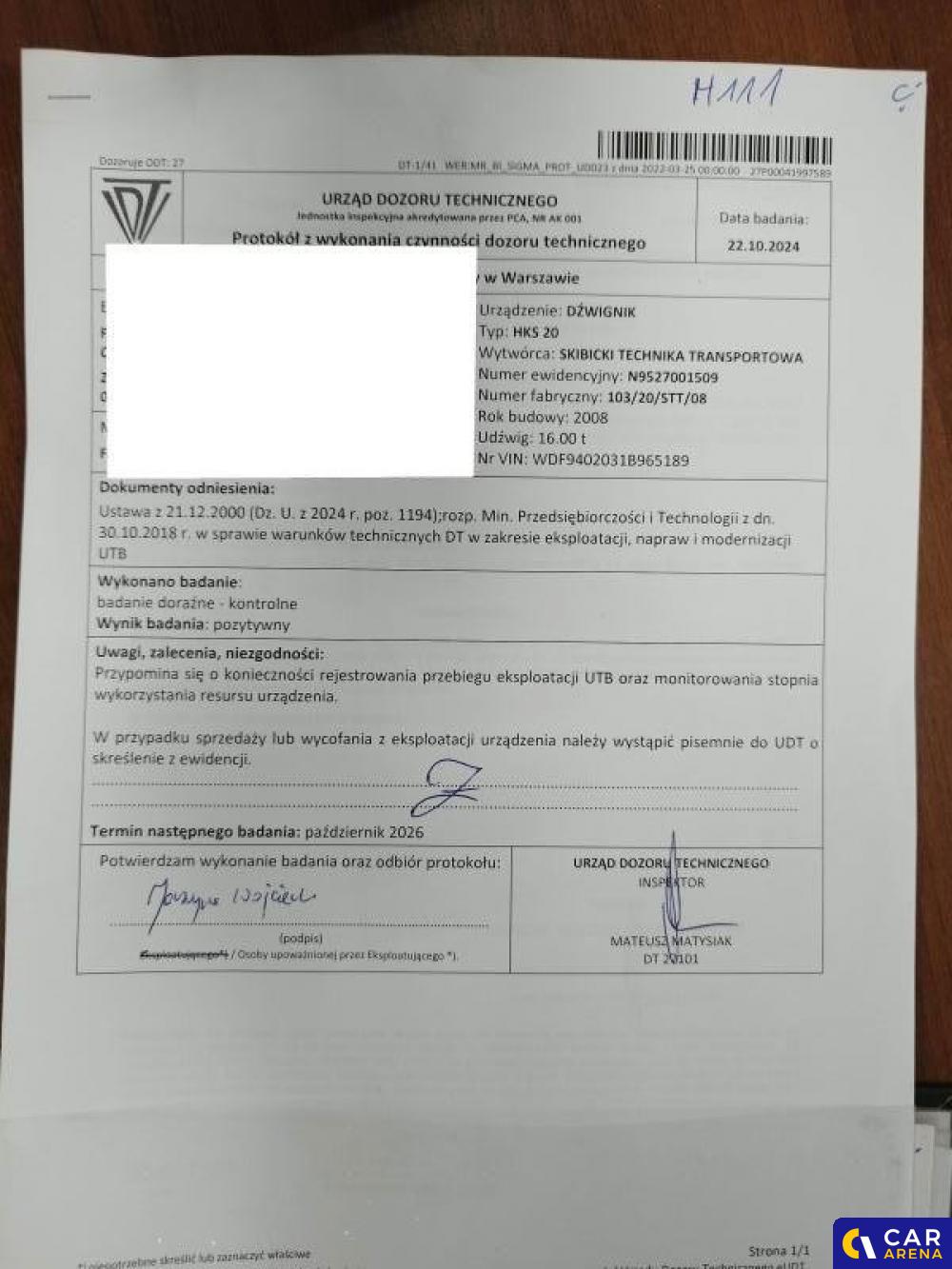 | Badanie techniczne | 15-11-2025 |