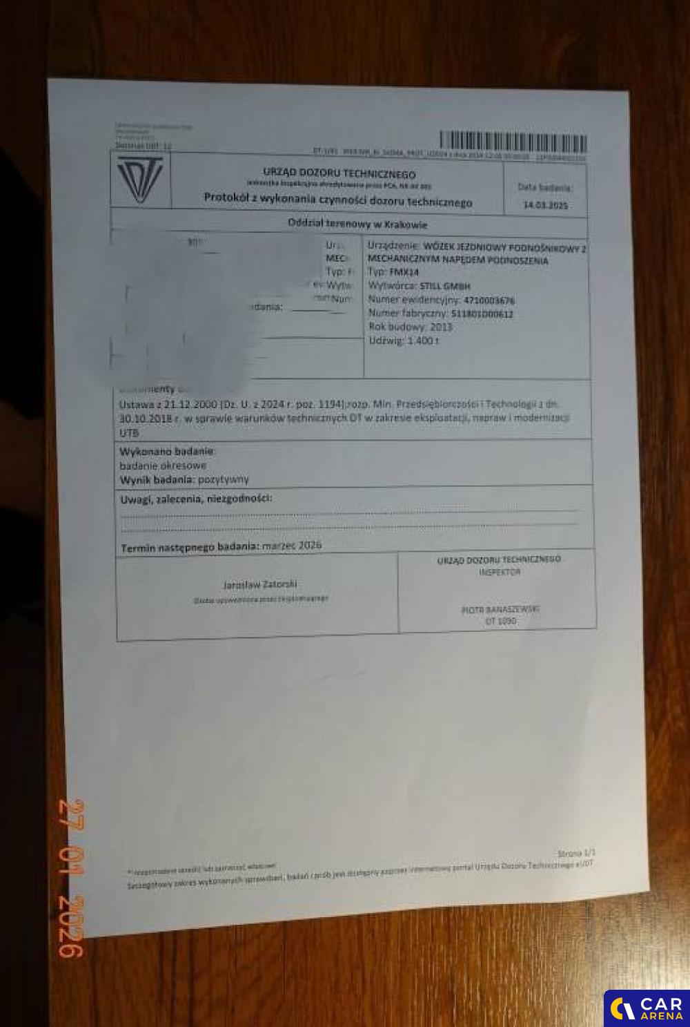 | Badanie techniczne | Brak danych |