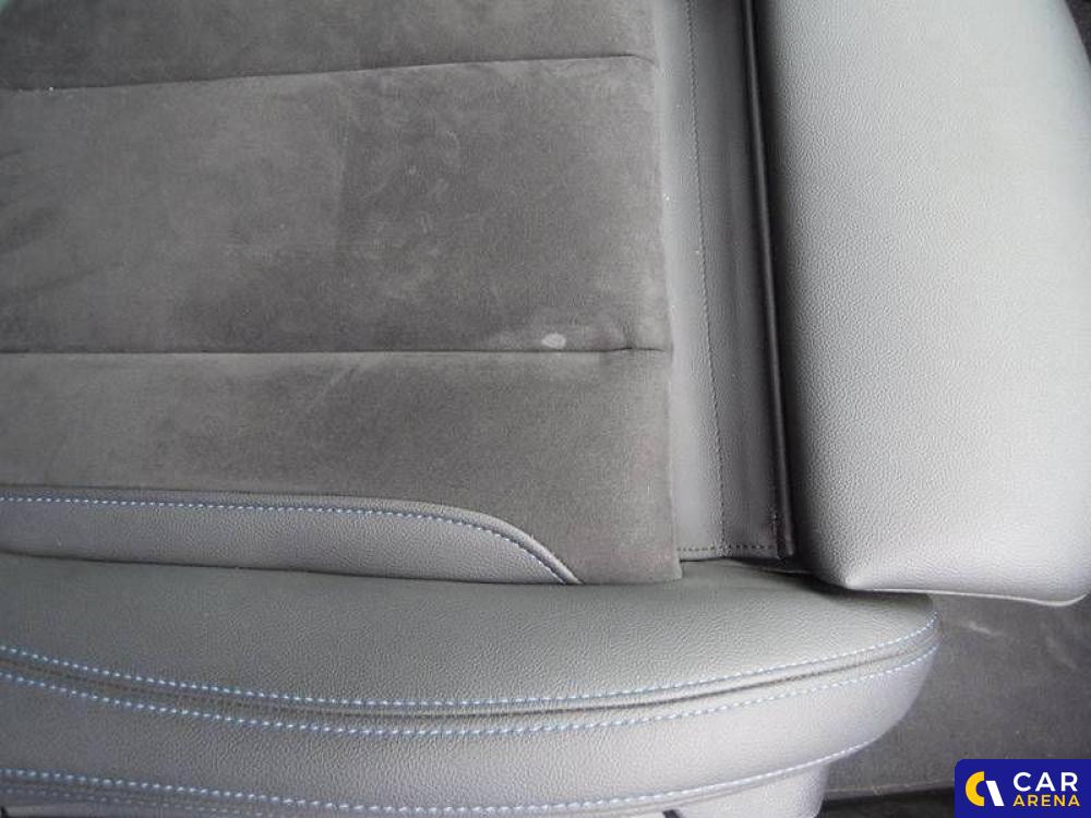 Tapicerka polaczenie alkantary i sensatec w kolorze czarnymz kontrastowym przeszyciem