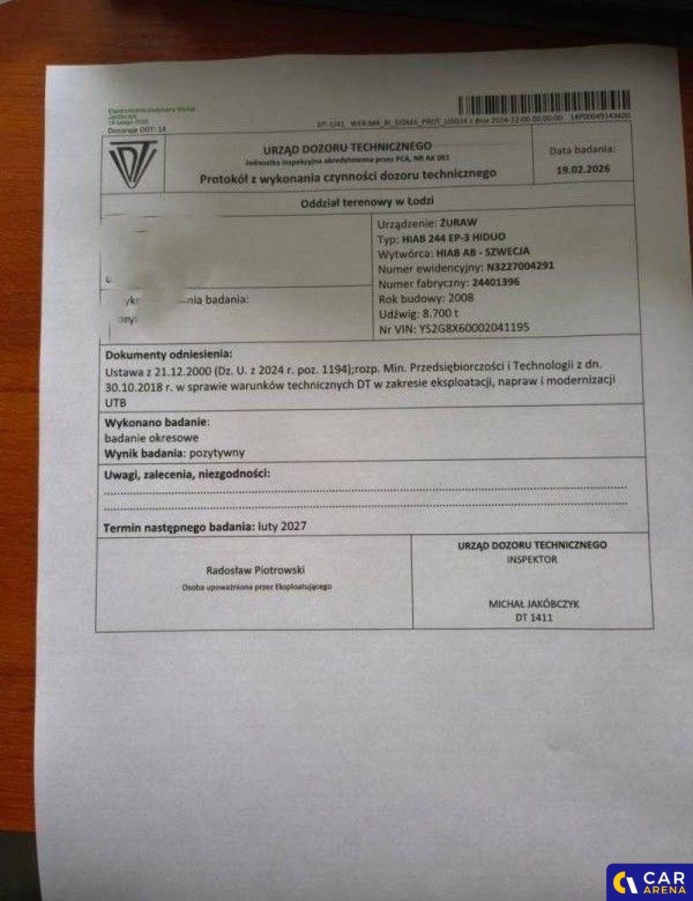 | Badanie techniczne | 05-05-2026 |