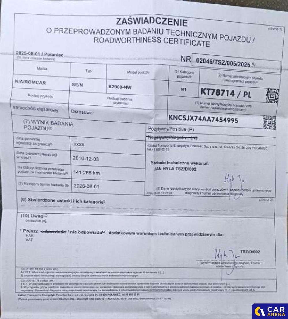 | Nr rejestracyjny | KT78714 |